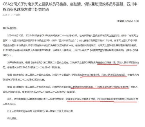 上午!CBA发布重磅罚单,苏川战6人遭罚款4人被禁赛,1队受益最大